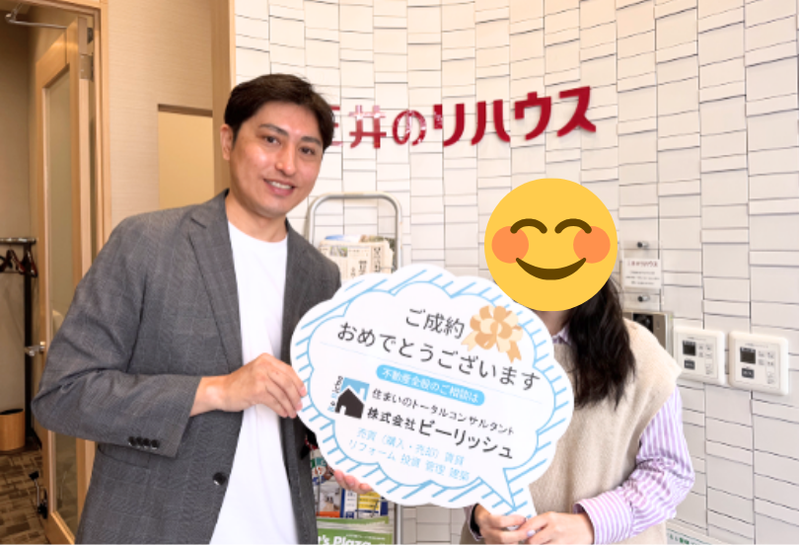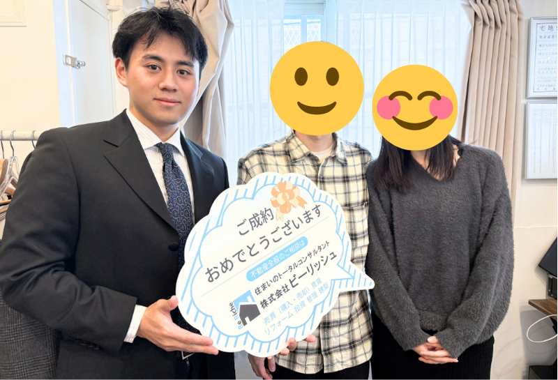 【担当コメント】 お忙しい中、平日にもお時間を調整して内見にお越しいただき、その結果、心からご満足いただけるお家に巡り合えたことを大変嬉しく思い ます。今後もお住まいに関して何かございましたら、ビーリッシュが引き続きサポートいたしますので、どうぞお気軽にご相談ください。